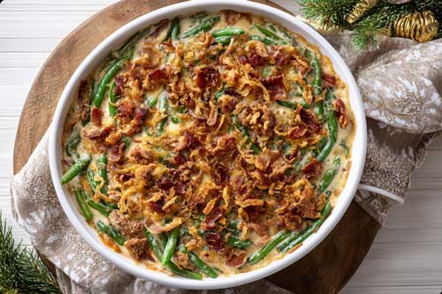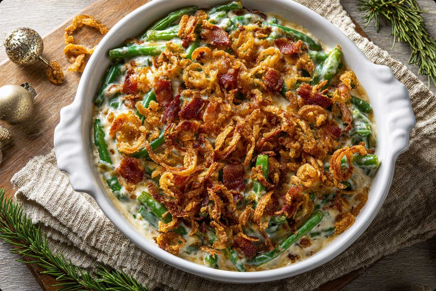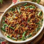 - Highlight: A rich, creamy, bacon-studded green bean casserole with mushroom sauce and crisp topping perfect for holiday dinner, New Year potlucks, or cozy family feasts.
