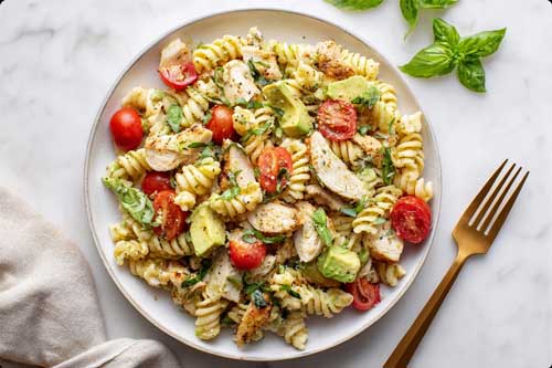 How to Make Healthy Chicken Pasta Salad with Avocado & Tomato
