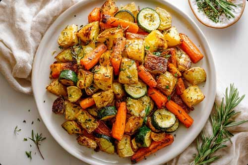 This easy Garlic Herb Roasted Potatoes, Carrots, and Zucchini recipe is a healthy, flavorful side dish made with simple ingredients. Tender carrots, crispy potatoes, and juicy zucchini are tossed in olive oil, garlic, and rosemary, then roasted until golden and perfectly seasoned. It’s a cozy, wholesome side that pairs beautifully with chicken, fish, or any family meal.