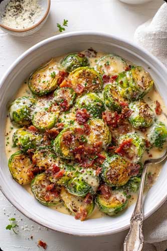 This Instant Pot Creamy Brussels Sprouts with Bacon recipe takes a misunderstood vegetable and turns it into something deliciously irresistible. It’s creamy, comforting, and full of flavor — with crispy bacon making every bite better.