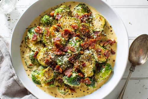 Cream cheese and Parmesan melt into a dreamy sauce that coats every sprout. No watery pan juices here, just rich, silky goodness.