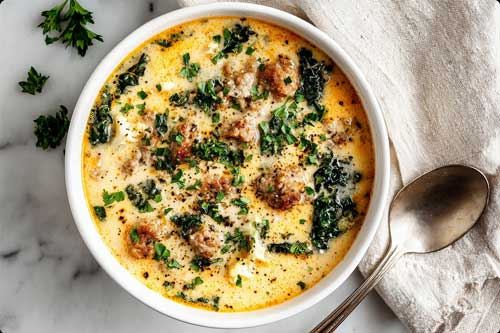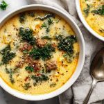The base is a dreamy combination of sautéed Italian sausage, onions, and garlic simmered in a broth that’s enriched with heavy cream and Parmesan. Kale adds a pop of color and freshness. Every spoonful is cozy, hearty, and just plain delicious.