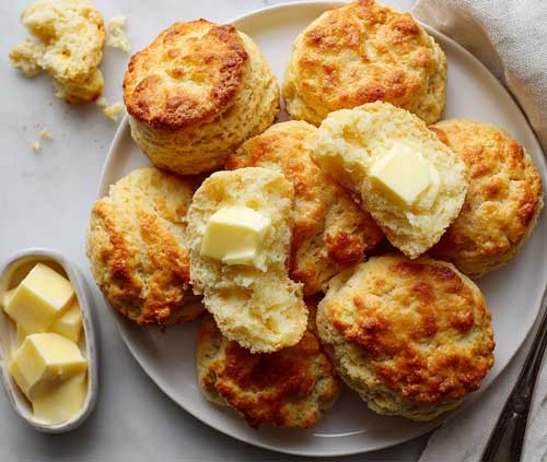 • Use fresh baking powder. Old baking powder means flat biscuits.