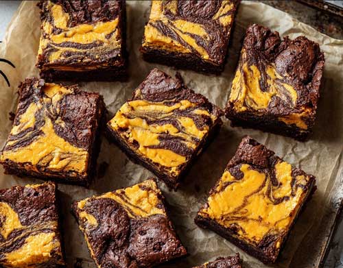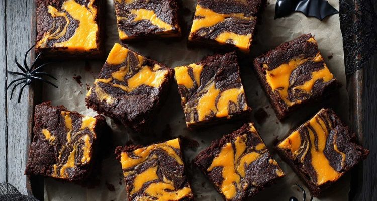 If Halloween had a dessert mascot, these brownies would be wearing the crown, and probably smudging it with pumpkin cheesecake.