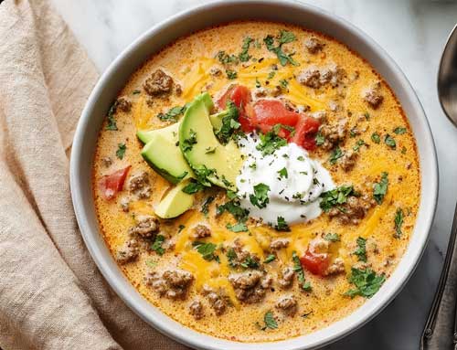 This Keto Creamy Taco Soup is thick, rich, and full of taco flavor. Made with ground beef, cream cheese, and spices, it’s a low-carb comfort meal you can cook in just 30 minutes. Perfect for weeknight dinners, meal prep, or cozy weekends.