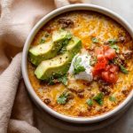 Every spoonful has tender ground beef, a hint of spice, a creamy texture that melts on your tongue, and that classic taco taste you crave when you’re trying to eat healthy but still want comfort food.