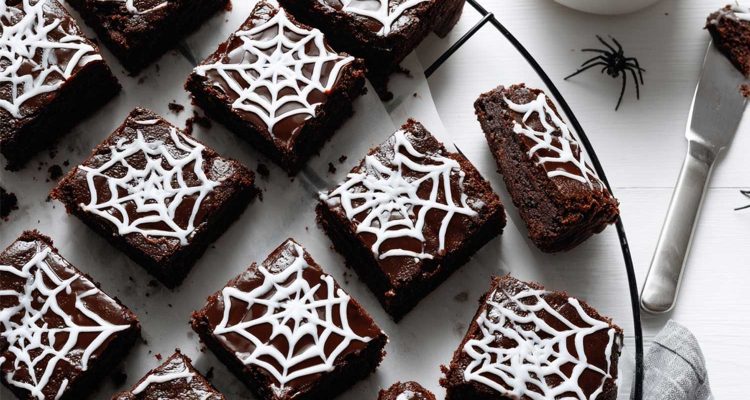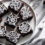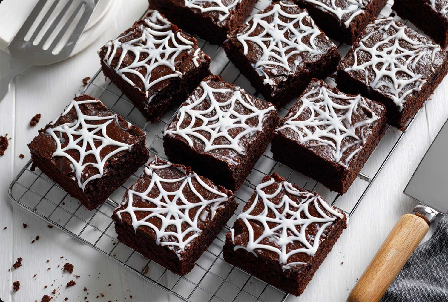 10. Spread a thin layer of glaze over cooled brownies. Pipe small circles on top with remaining glaze. Drag a toothpick from center to edge to make a web. Let set 10–20 minutes.