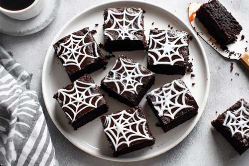 Simple steps, clean ingredient list, holiday-friendly look, and reliable texture. Photos love that rich black crumb with bright white web on top. It’s the kind of treat for October, then make in February too because the fudgy bite hits any month. Short, snackable tips help readers fix stuff on the spot, and the swaps cover most diets without sending anyone to five stores.