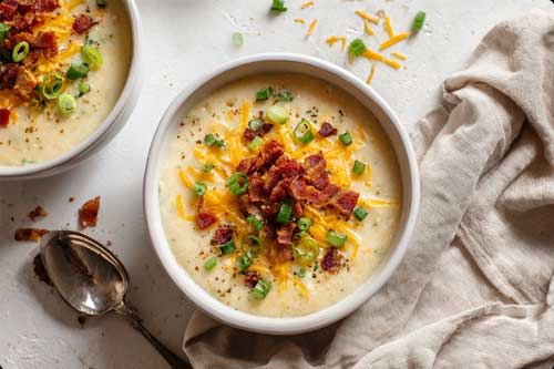 • Serve: Ladle into bowls and top with extra cheese, bacon bits, and green onions. Serve hot and enjoy!