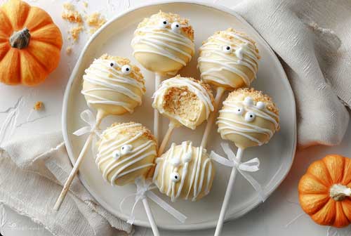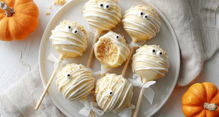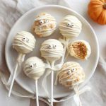 I’ll walk you through the whole thing: the cake, the crumb, the shaping, the coating, the mummy bandage look, and the tidy way to keep them from sliding off the stick.