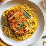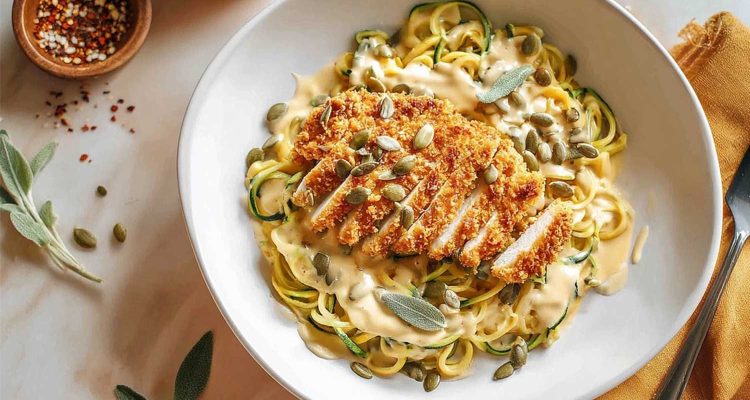 You don’t need to be a pro to pull this off. Read the steps once, set your ingredients out, and breathe. The most important moments are short: don’t burn the garlic, don’t overcook the zoodles, don’t flip the chicken too soon. The sauce will forgive small slips. The lemon will fix flat spots. And that first bite—creamy, a little sweet from pumpkin, salty-cheesy, with a crackle from the chicken—hits like fall in a bowl.