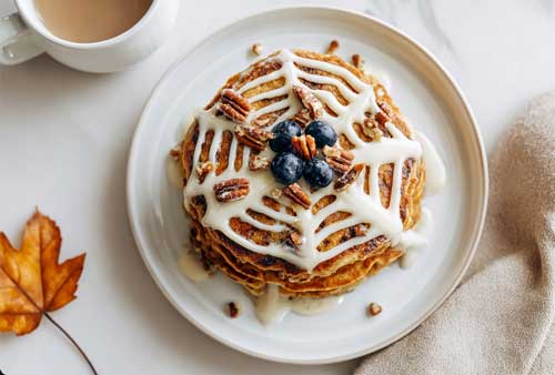 Step-by-Step Instructions For Keto Pumpkin almond-flour pancakes with cream cheese webs