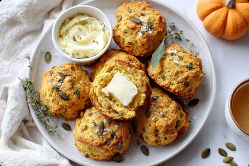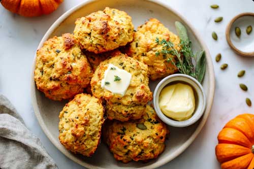 - Side: these pumpkin herb biscuits, served warm with herbed butter.