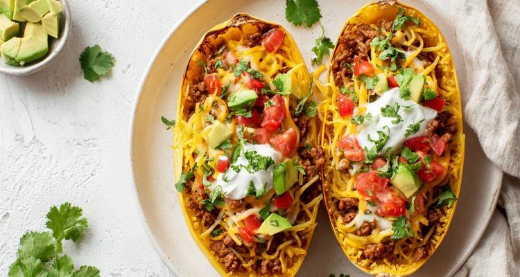 A cozy, low-carb meal that’s full of flavor and perfect for ember months. Roasted spaghetti squash halves filled with seasoned taco meat, cheese, and creamy toppings, everything you love about taco night, made keto-friendly and oven-baked.