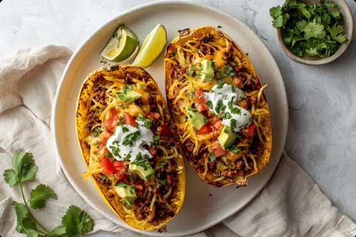PrintKeto Spaghetti Squash Taco Boats Recipe