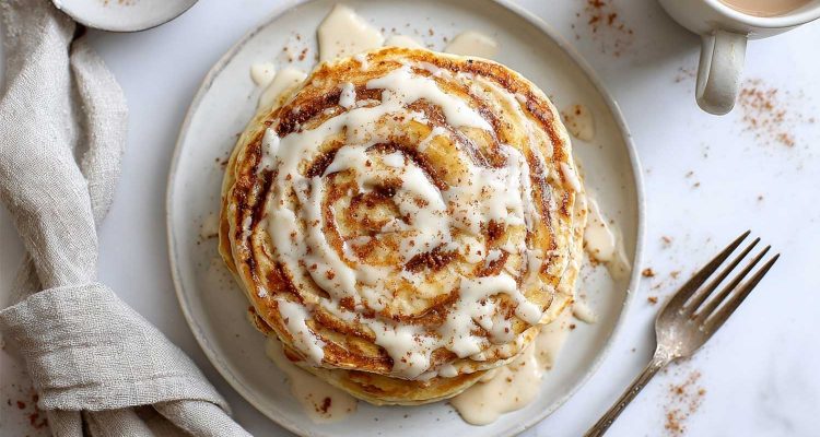 Soft and buttery keto pancakes with a sweet cinnamon swirl and creamy glaze. These low-carb pancakes taste just like cinnamon rolls but are sugar-free and perfect for a cozy morning breakfast.