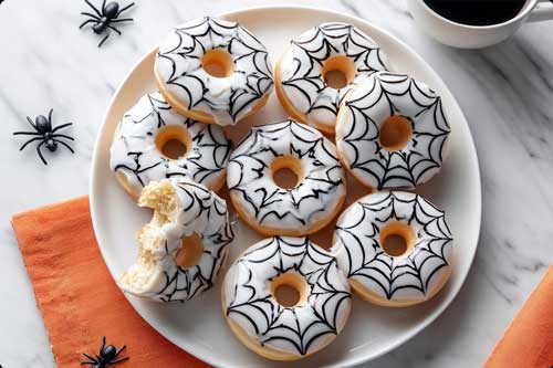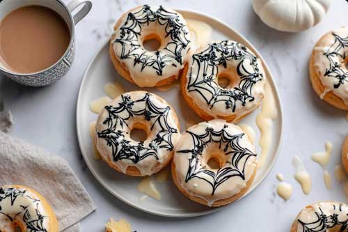 You pull these golden rings out of the oven, smell that warm vanilla, paint those little spiderwebs—and suddenly Halloween feels fun again, even if you’re counting carbs and skipping candy.
