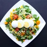 - Add the spinach, cherry tomatoes, red onion, and edamame.