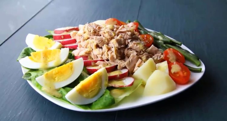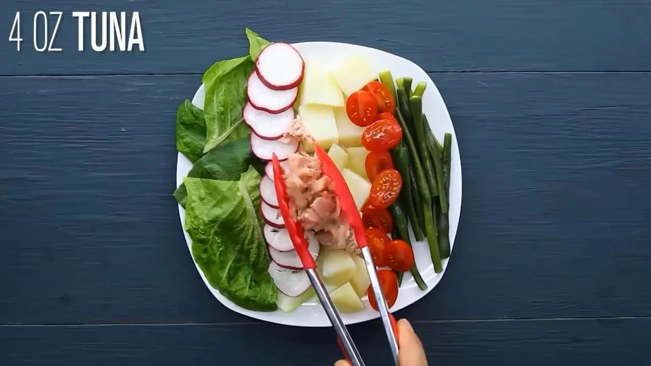 You get soft potato, crisp radish, juicy tomato, firm egg, and tender green beans on the same fork, so it never eats flat.