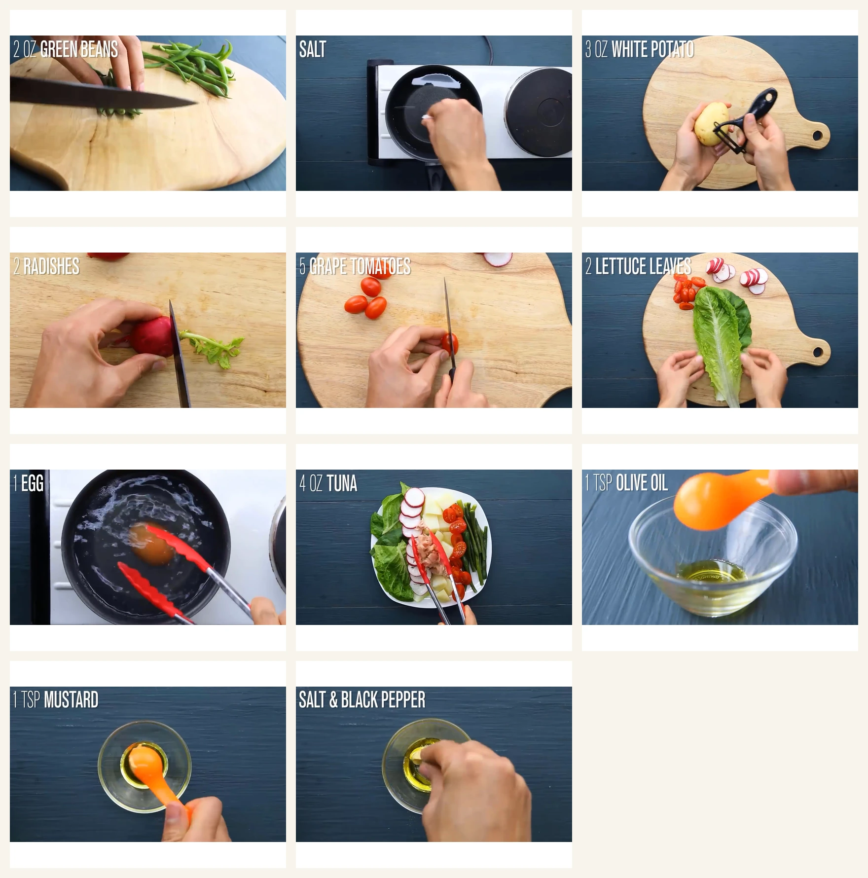 You can keep the cooked egg, potato, and green beans in the fridge for up to 2 days before you plate the salad.