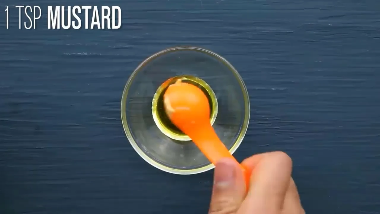 9. Stir the olive oil, mustard, salt, and black pepper together.
