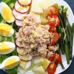This tuna nicoise salad brings lettuce, green beans, potato, egg, radishes, tomatoes, and tuna together on one plate with a quick mustard dressing. It is filling, clean, and looks a little special without being hard to make.