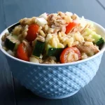 The mustard dressing pulls the whole thing together without burying the vegetables or the tuna.