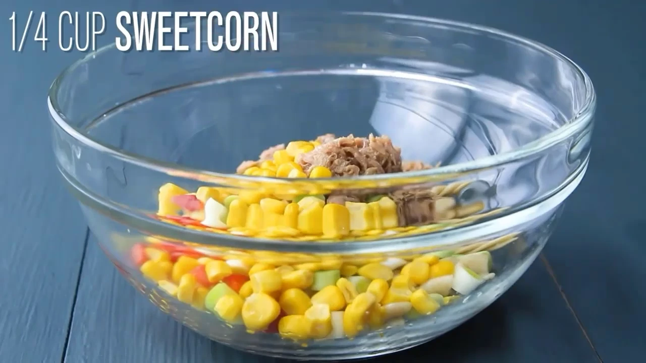 4. Add the sweetcorn last so it sits over the top of the bowl just like the video shows.