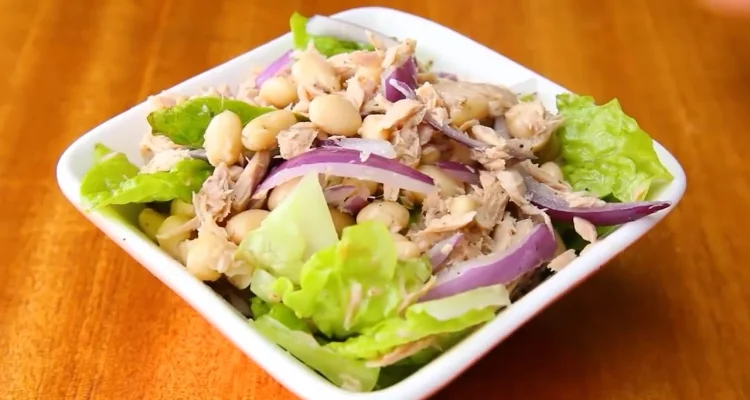 This tuna white bean salad is a fast lunch with lettuce, onion, tuna, and beans in a simple olive oil vinegar dressing. It is light, filling, and easy to keep on repeat.
